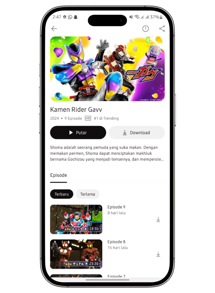 Episode berikutnya bisa diputar langsung tanpa perlu memilih ulang. Fitur ini cocok untuk Anda yang ingin menonton banyak episode sekaligus.